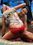 Apparently they just finished the World Gravy Wrestling Championship, held at the Rose 'n' Bowl pub in Stacksteads, Lancashire (hope I spelled that right, just copying from another source). The women's winner was 23 year old Emma Slater, a ring card girl who entered at the last moment. Here's a couple of pics from a celeb gossip site. No sign of Dio in the background tho . . . whither our guy?