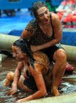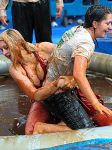 Apparently they just finished the World Gravy Wrestling Championship, held at the Rose 'n' Bowl pub in Stacksteads, Lancashire (hope I spelled that right, just copying from another source). The women's winner was 23 year old Emma Slater, a ring card girl who entered at the last moment. Here's a couple of pics from a celeb gossip site. No sign of Dio in the background tho . . . whither our guy?