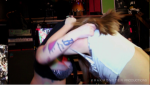 _ _ _ UNCUT FOOTAGE : BANNED FROM MTV : SINTHUSED PLAYING GUITAR WITH HER HAIRY CROTCH. Originally filmed for a reality tv series about bands that constantly fight, this exclusive clip features the band GASH BASH at their most nastiest - as the bass player Sinthused begins this clip -masturbating, by rubbing her guitar strings against her pussy thru her costume- while the guitar is still plugged in (!), and plays the guitar like this for the entire1st half of this clip. She squats at one point, but mostly remains standing with her guitar on the floor- with the neck of her guitar and strings grinding against her pussy, - and the camera provides a few close-ups of her crotch area, which appears to be very unkempt and hairy - with short stubble, and long hairs along her inner thighs. While she's busy grinding on her guitar with her pussy- the top of the guitar gets caught on her strapless top, pulls it down accidentally - and her humungous 36 F size boobs flop out. She continues on, and squeezes her big boobs together around the top of the neck of the guitar, and wraps them around the guitar as well. . . Once the lead singer Star finally shows up for the rehearsal wearing a too-short dress and Michael Jackson Glove, the band starts to play and practice; but after a few moments - she stops, and gets in the guitar player's face - yelling that she is ****ing up all her parts again. Sinthused stops playing, puts the guitar down, and the two get into a full blown catfight - grabbing on each other's dresses- pulling them up over their heads; but Star's flimsy silver costume gets pulled off of her first. Then in a fit of rage, Star shoves Sinthused to the ground- pulling her dress completely up over her head, and off of her, and they wildly slap at each other's exposed boobs. Since Sinthused can't really see out of her fetish mask covering her eyes, Star gets the best of her, and slaps at her, ties her arms up with her own scarf, and then returns some of the hard slaps to her boobs and face. She ends the madness by bending Sinthused over, giving her a painful deep wedgie, and spanking her booty till it's pink and red. Star leaves Sinthused bruised and battered on the floor whimpering and crying on the floor, curled up in the fetal position. HD 1280 x 720p Don't miss the other clips featuring GASH BASH!